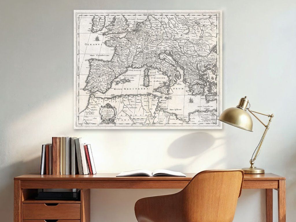 Reprodukce historické mapy Evropy od Jana Janssonia datované kolem roku 1652.