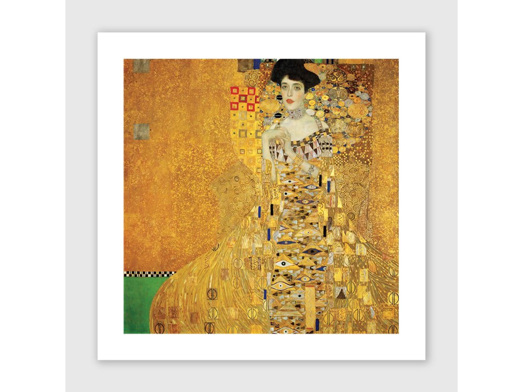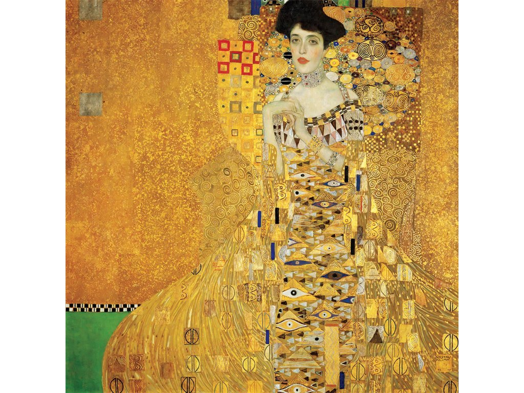 Adele Bloch-Bauerová je zobrazená s jemným, ale intenzivním výrazem v očích, což dodává portrétu hloubku a emocionální náboj. Její ruce jsou elegantně složené, s výrazným prstenem na pravé ruce, což poukazuje na její společenský status a osobní vkus. Pozadí obrazu je stejně složité a bohaté jako šaty samotné Adely, pokryté zlatými mozaikami a ornamenty, které vytvářejí dojem nadčasové krásy a luxusu. Klimtův mistrovský způsob kombinace realistického portrétu s abstraktními a dekorativními prvky činí z "Zlaté Adele" jedinečné umělecké dílo, které oslavuje jak krásu samotné modelky, tak i uměleckou genialitu svého tvůrce.